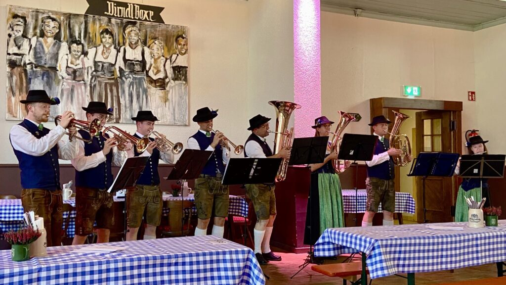Eine Woche nach unserer Matinée mit der Stadtkapelle Bad Bentheim in der wunderschönen Marthabräu-Festhalle durfte unser Ensemble AmperBlech den Festakt zum 100-jährigen Jubiläum musikalisch begleiten. 1925 wurde die Halle nach den Plänen von Architekt Adolf Voll errichtet. Bauherrin war die damalige Brauereibesitzerin Julie Mayr (1868-1960). Ihr Wirken ist ein großes Vorbild für die jetzigen Wirtinnen Nadin Fischer und Anja Schmölz, wie die beiden zur Begrüßung betonten.