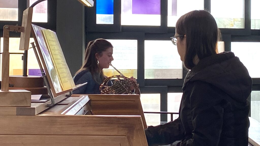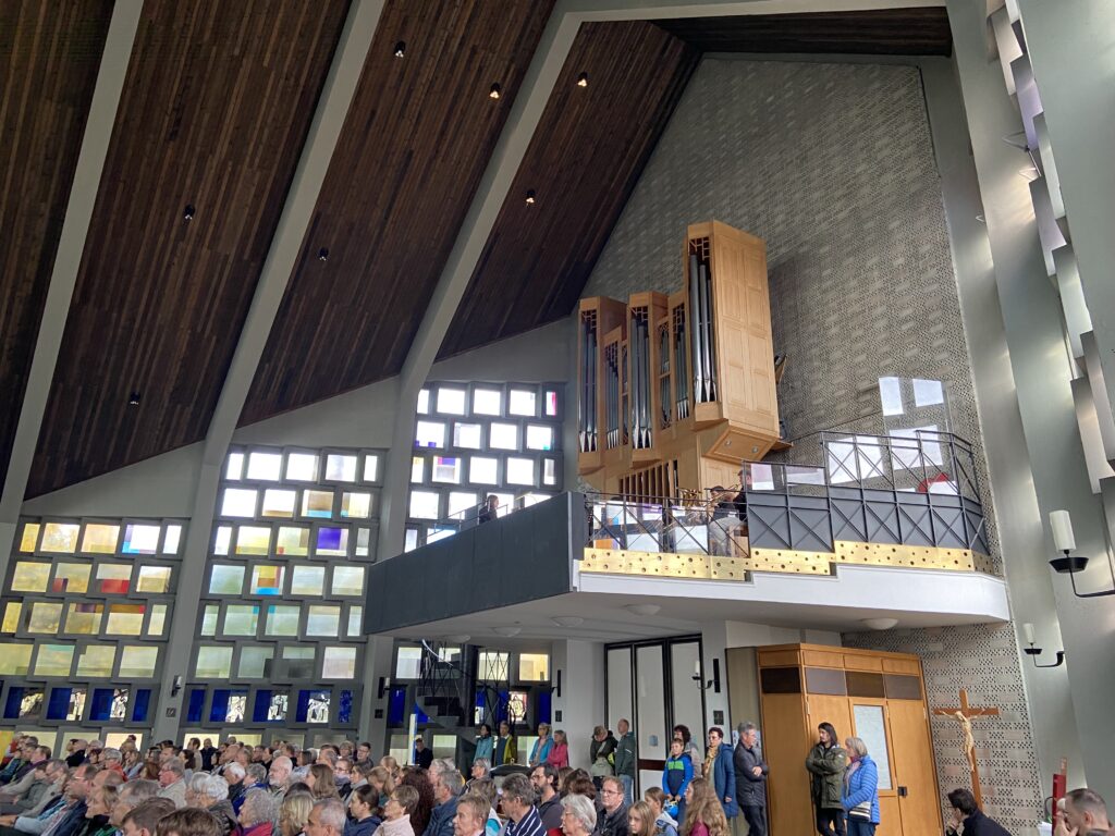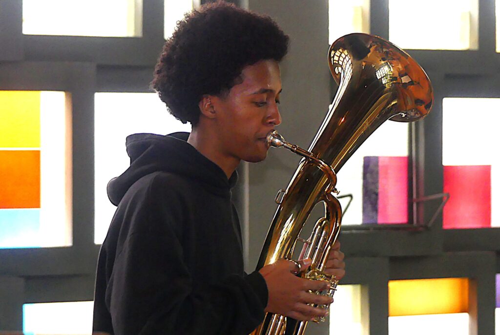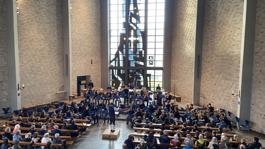 „You Raise me up“ erklang als Solostück mit Klara Köster am Waldhorn, der zweite Satz aus Haydns Konzert in Es-Dur als Solo mit Paulus Gurmu am Tenorhorn. Pfarrverbands-Organistin Regina Neumüller begleitete beide feinfühlig an der Kirchenorgel.