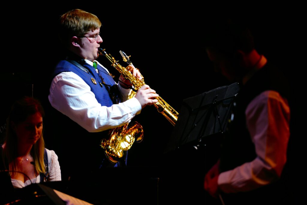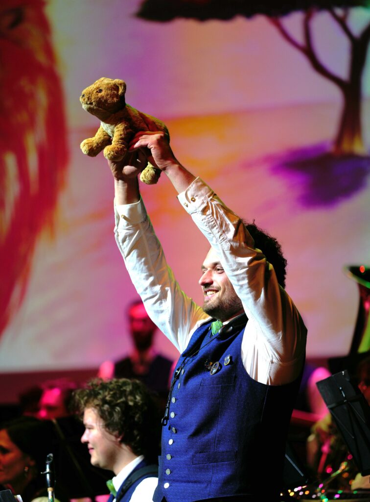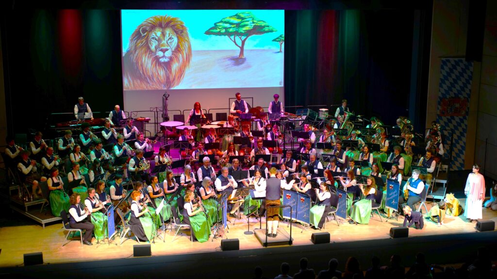 Das Hauptorchester begann festlich mit der „Fanfare – Benefaction of Sky and Mother Earth“, mit dem „Orient Express“ begaben sich alle auf eine musikalische, klangmalerische Zugfahrt. Lukas Klose brillierte mit seinem Solo Stück „Saxophone Concertino“. Das Flötenregister präsentierte in mystischer Atmosphäre „How to train your Dragon“, „Lord Tullamore“ entführte das Publikum nach Irland, in „Queen Symphonic Highlights erklangen die Kult-Hits ganz neu, mit überraschend zarten Passagen. Als Mini-Musical wurde „The Lion King Soundtrack Highlights“ aufgeführt, mit Sängerin Rosi Klar und einer kleinen Tierwelt – Kinder aus den Nachwuchsorchestern und den Bläserklassen.